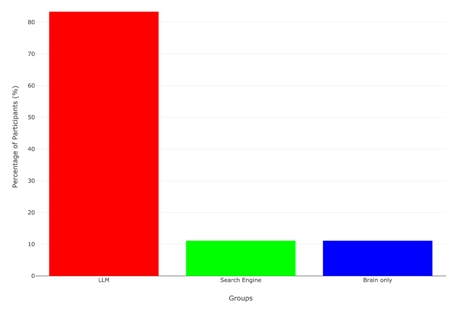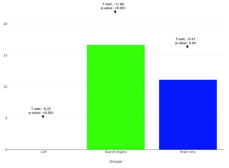 This mental graveyard had a direct, measurable impact. A shocking 83% of ChatGPT users couldn’t accurately quote from their own essays just minutes after writing them. In stark contrast, only 11% of the Brain-Only group and 16.7% of the Search Engine group had the same issue.