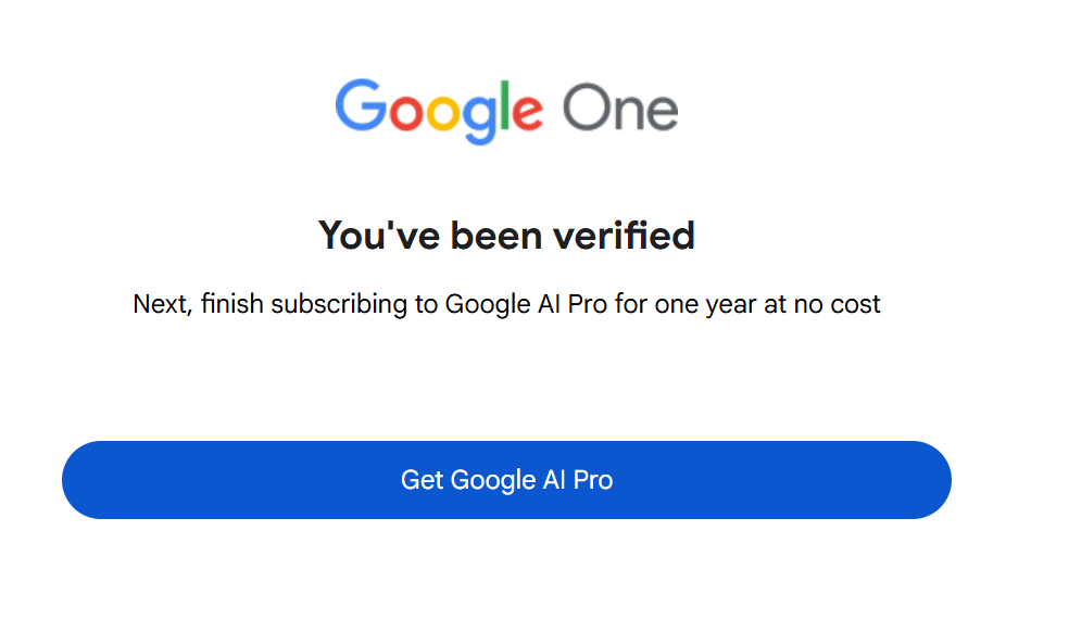 You will be redirected to the Google AI Pro page to select the 12-month free student plan.
