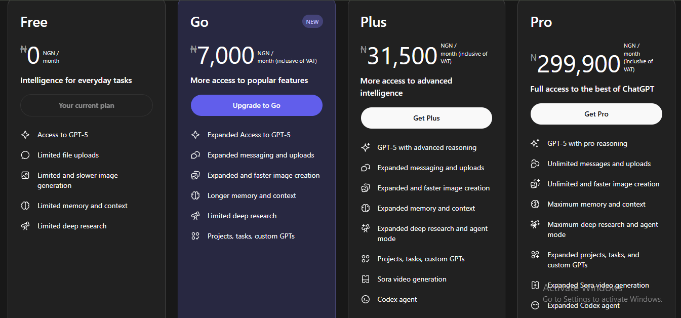 Pricing: This Go tier is priced at approximately R149/month in South Africa (roughly $8.50) and ₦7,000/month in Nigeria (around $4.71), reflecting a deliberate strategy to fit the cost of access to local economic realities. This represents an average 75% reduction compared to the standard ChatGPT Plus tier.