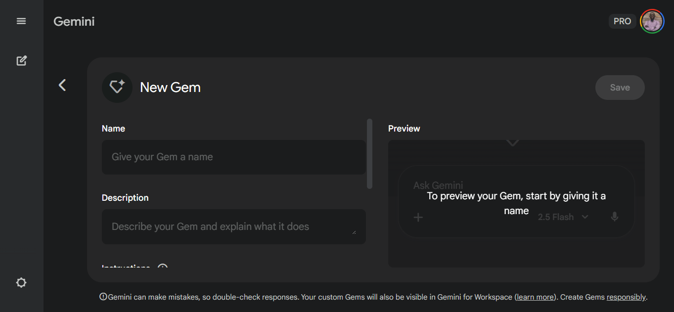You Define the Prompt: You go into the Gems builder and write the comprehensive system prompt detailing the agent’s identity, rules, tone, and formatting.