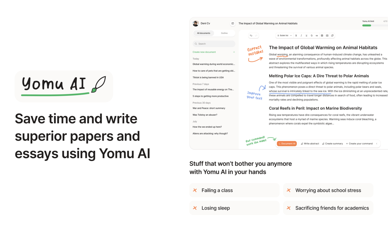 Yomu AI – AI-enhanced writing editor for students and academics. Don’t stress about deadlines. Write better with Yomu and simplify your academic life